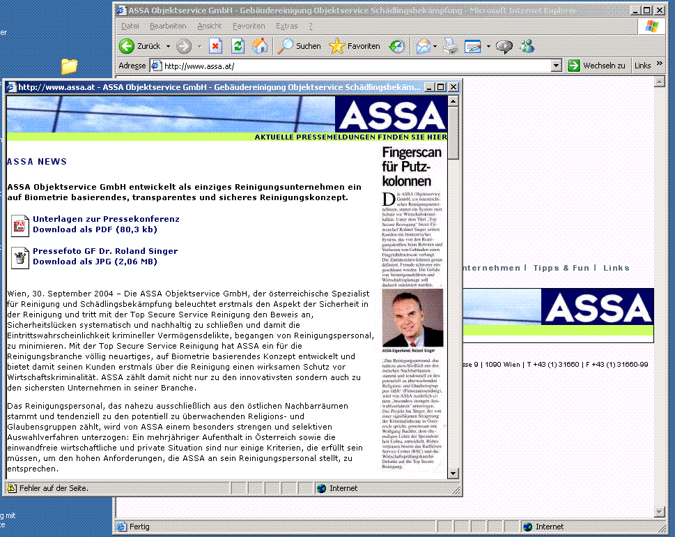 - (Löschen) (Aktuell) 21:26, 17. Okt 2005 . . Da (83275 Byte) (ASSA Homepage Screenshot 17.10.2005 - Popupblocker im IE muß ausgeschaltet werden)